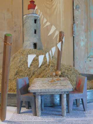 Na de voorstelling zijn de spelers weg. Maar de vuurtoren en het zand blijven achter. Zo kunnen de kinderen het verhaal zelf nog naspelen. Want dat is fijn, als je het zelf nog een keer kan doen, en nog een keer....En je kunt er zelf steeds weer dingen bij verzinnen. Ook fijn!